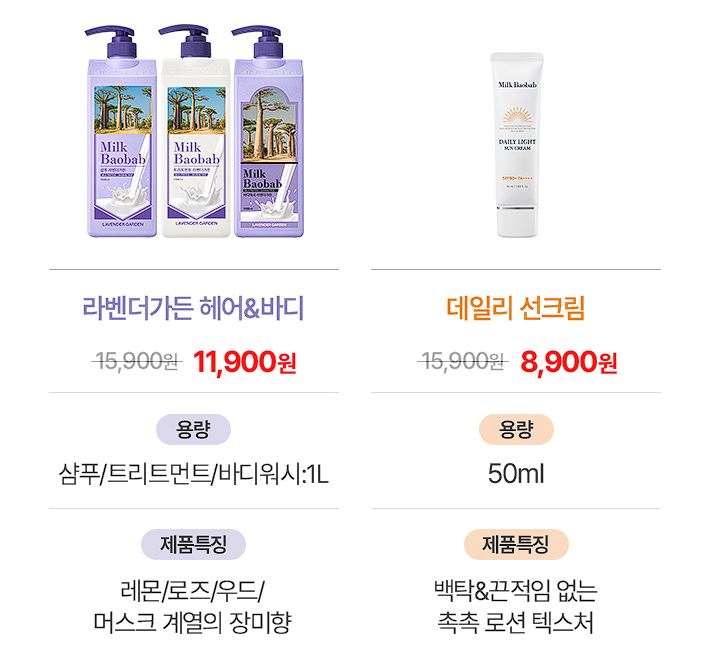 밀크바오밥 다양한 제품을 할인 판매하네요.