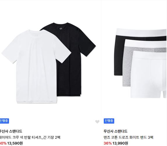 무신사 스탠다드 다양한 제품을 할인 판매하네요.