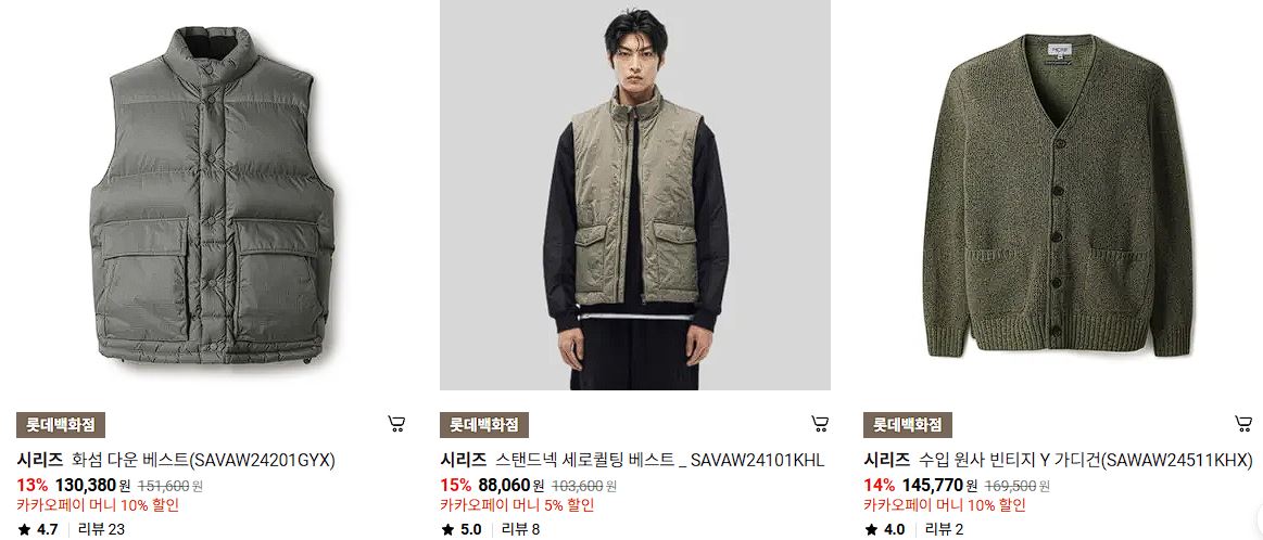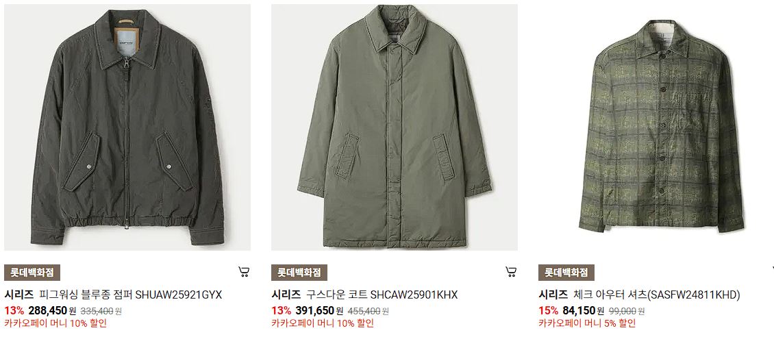 할인 품목 : 자켓, 점퍼, 팬츠 등