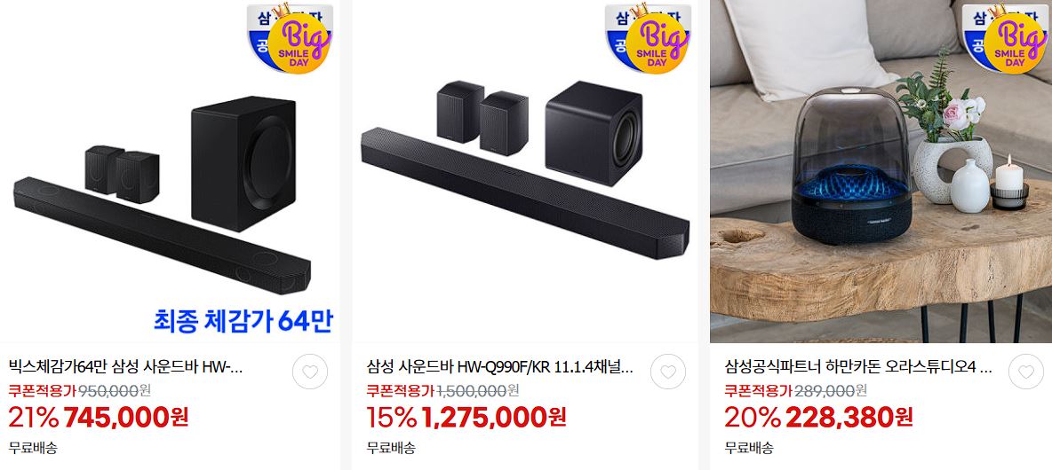 할인 품목 : 모니터, 사운드바, 에어컨 등