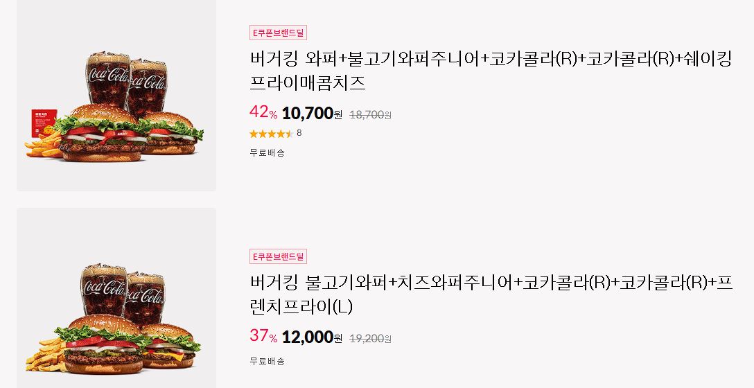 버거킹 다양한 메뉴를 할인 판매하네요.