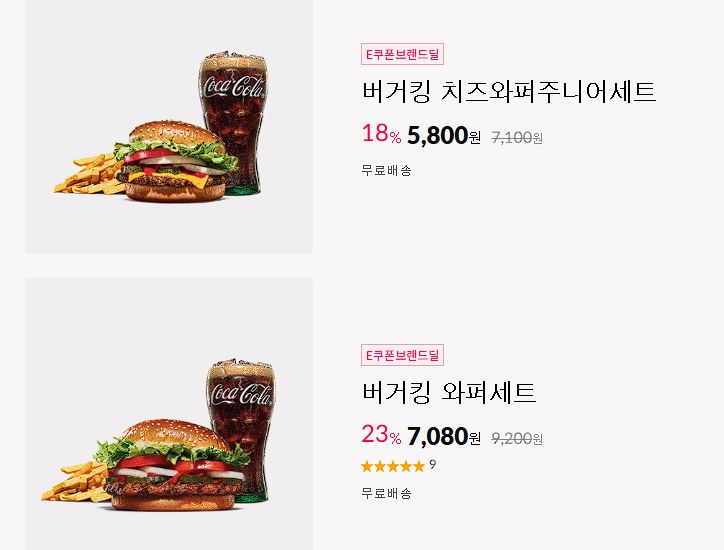 버거킹 다양한 메뉴를 할인 판매하네요.