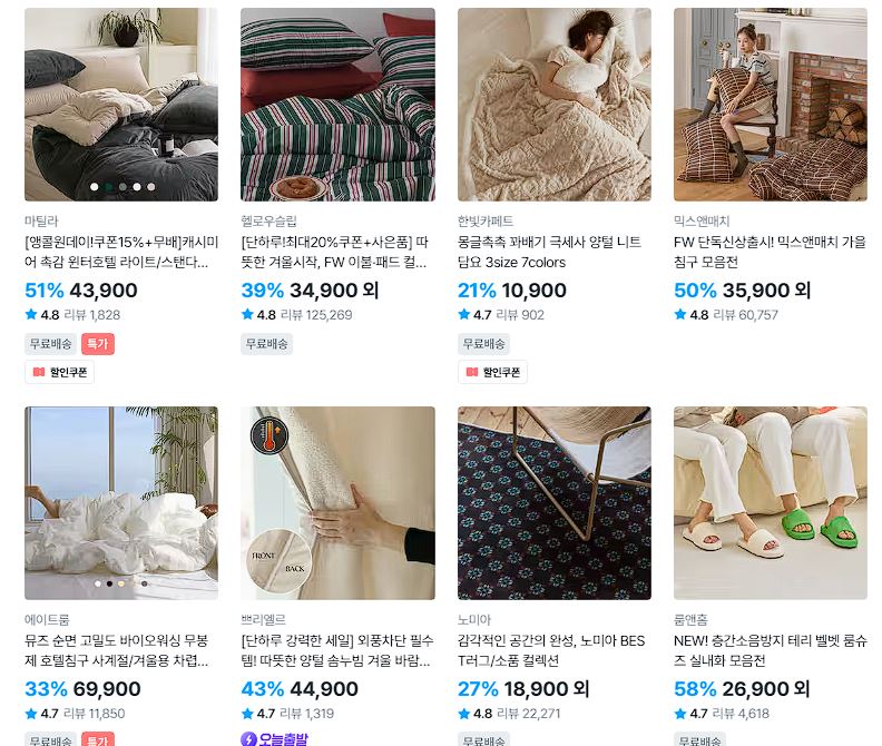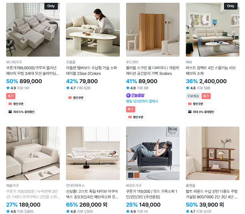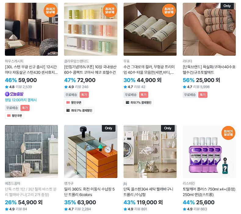 오늘의 집 다양한 제품을 할인 판매하네요.