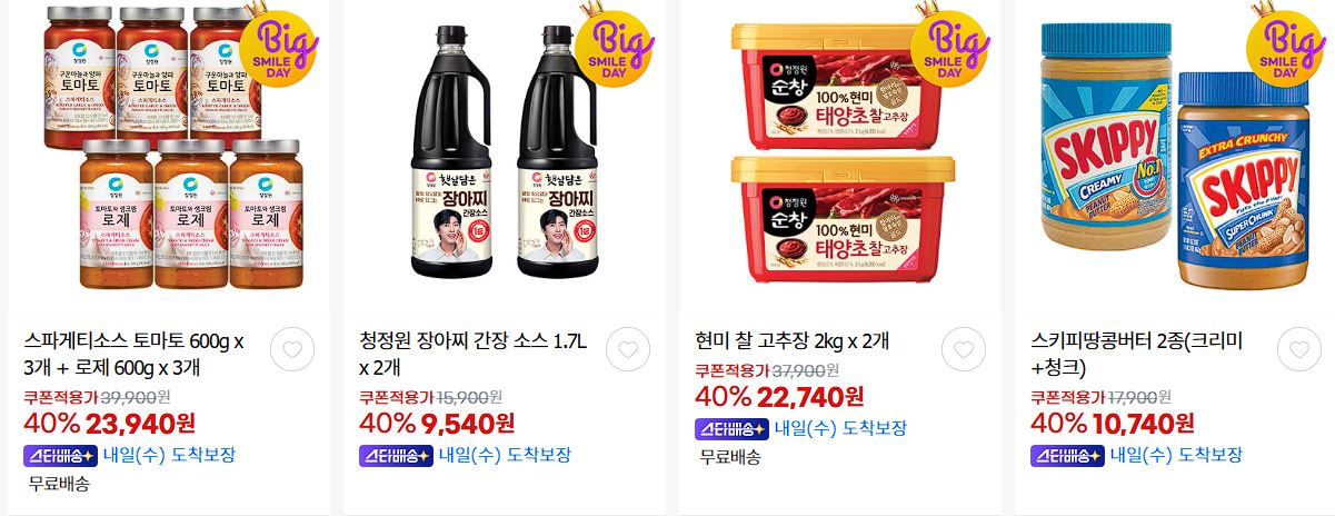 할인 품목 : 스파게티소스, 고추장, 땅콩버터 등