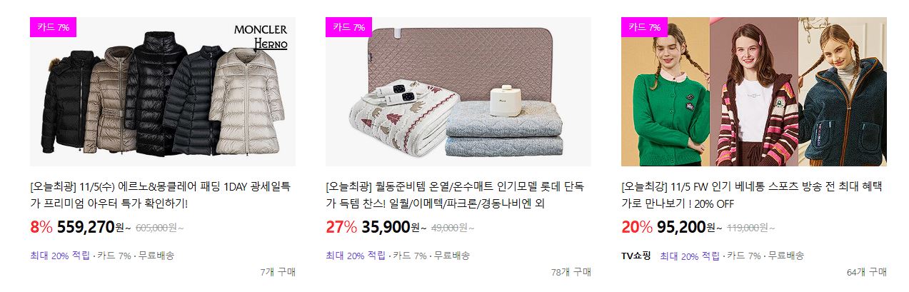 롯데홈쇼핑 다양한 제품을 할인 판매하네요.
