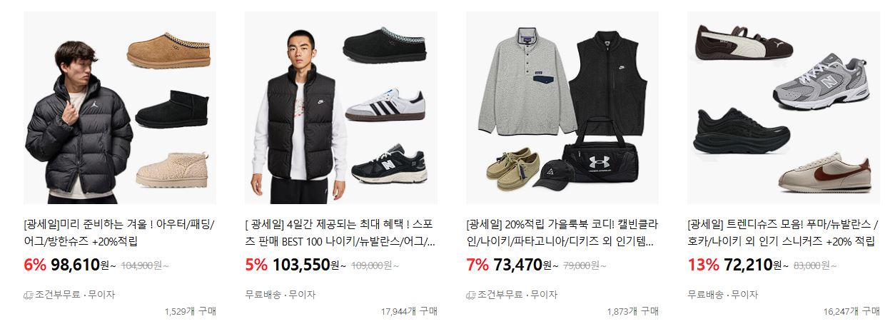 할인 품목 : 의류, 화장품, 식품 등