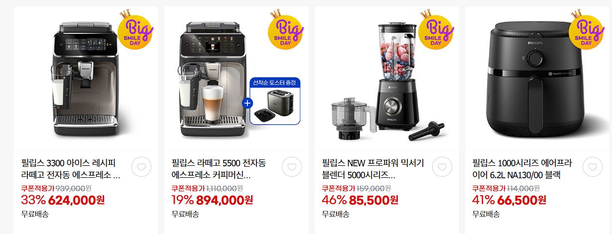 할인 품목 : 면도기, 커피머신, 토스터기 등