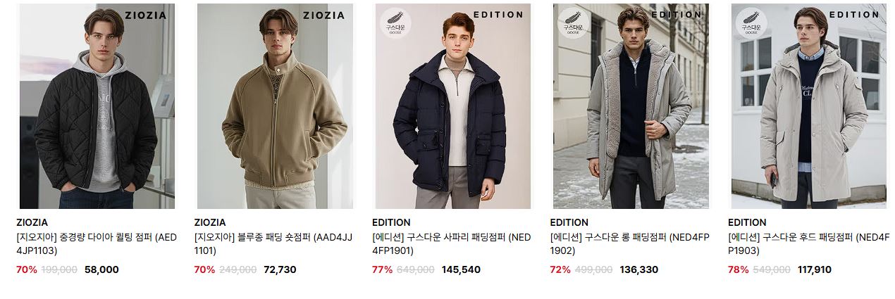 할인 품목 : 코트, 점퍼, 니트 등