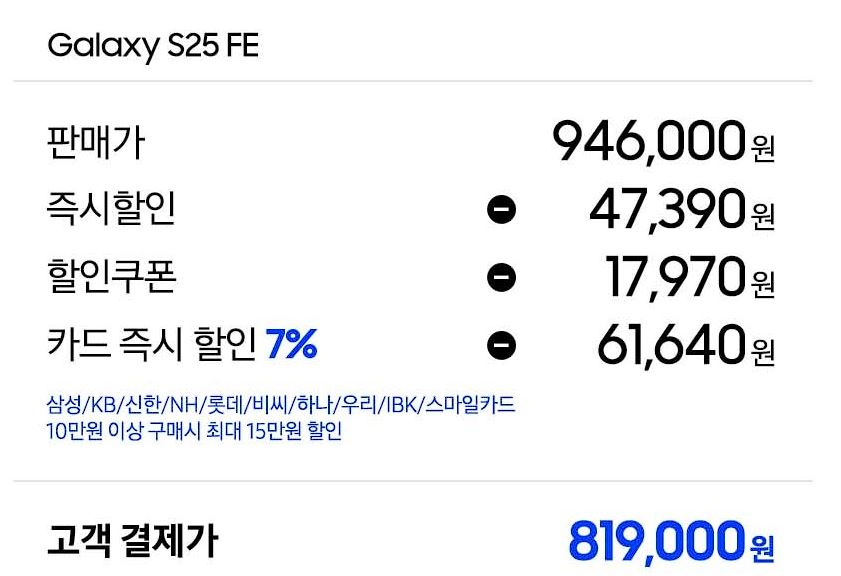 갤럭시 S25FE 256GB 자급제 할인 정보 [링크]