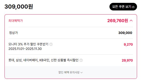 최대 할인가 269760