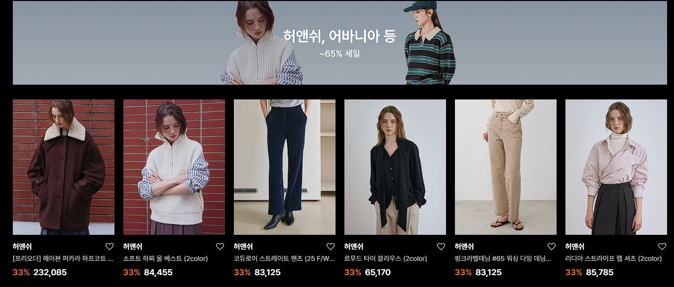 할인 품목 : 의류, 화장품, 가방 등
