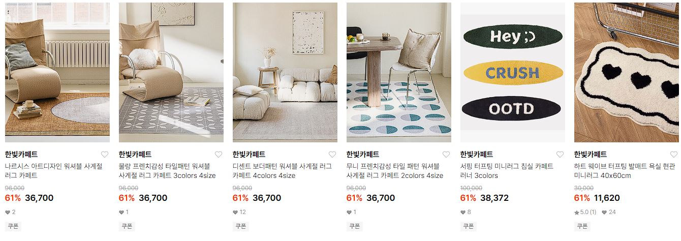 할인 품목 : 러그, 발매트 등