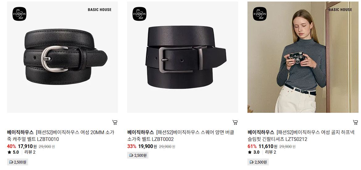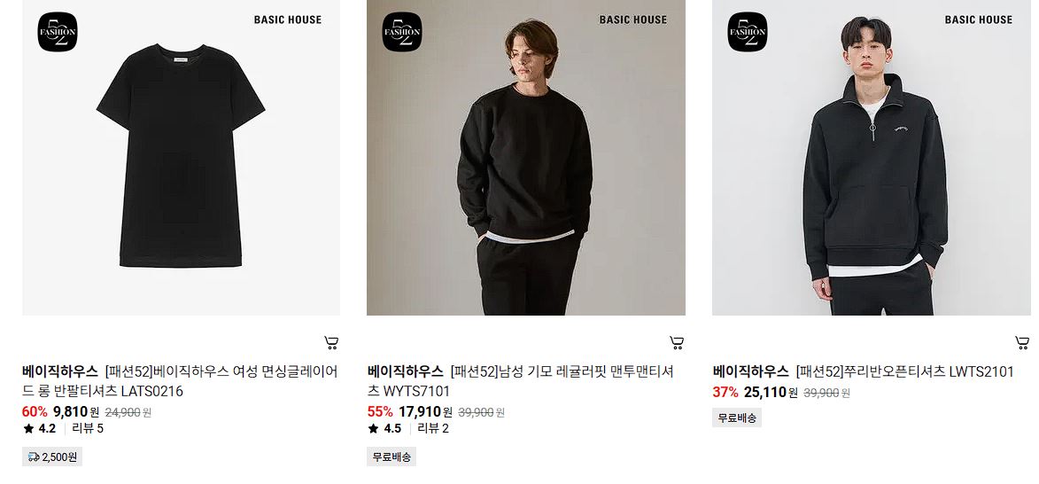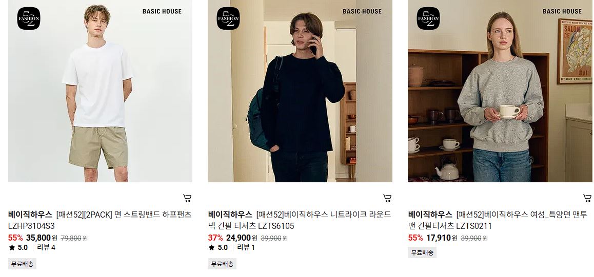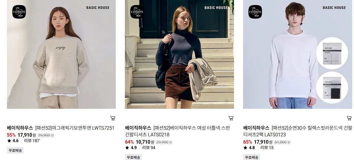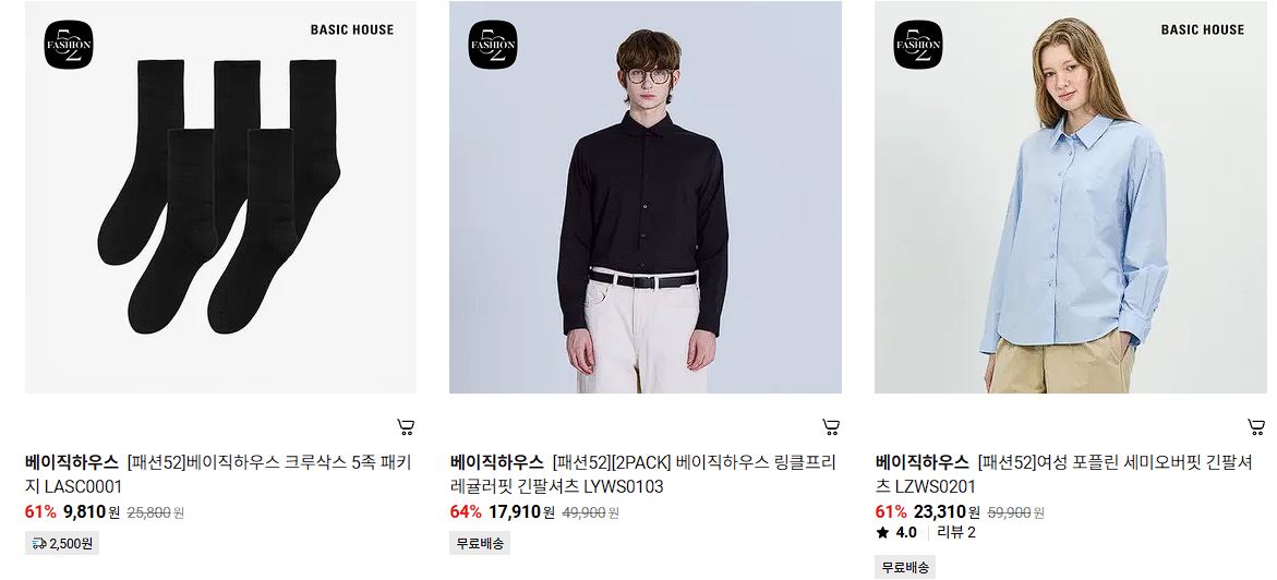 베이직하우스 다양한 제품을 할인 판매하네요.