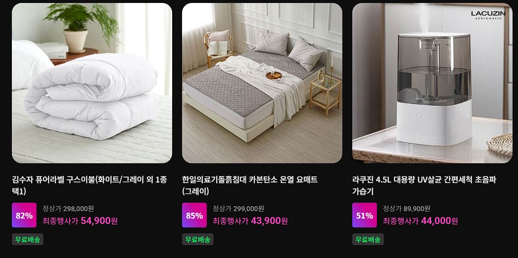 할인 품목 : 안마기, 침구류, 미용기기 등