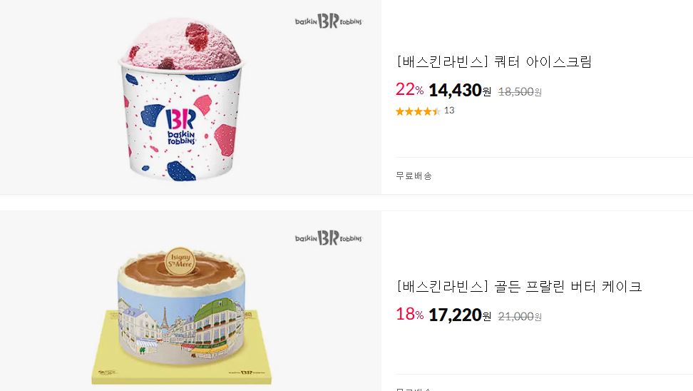 배스킨라빈스 다양한 제품을 할인 판매하네요.