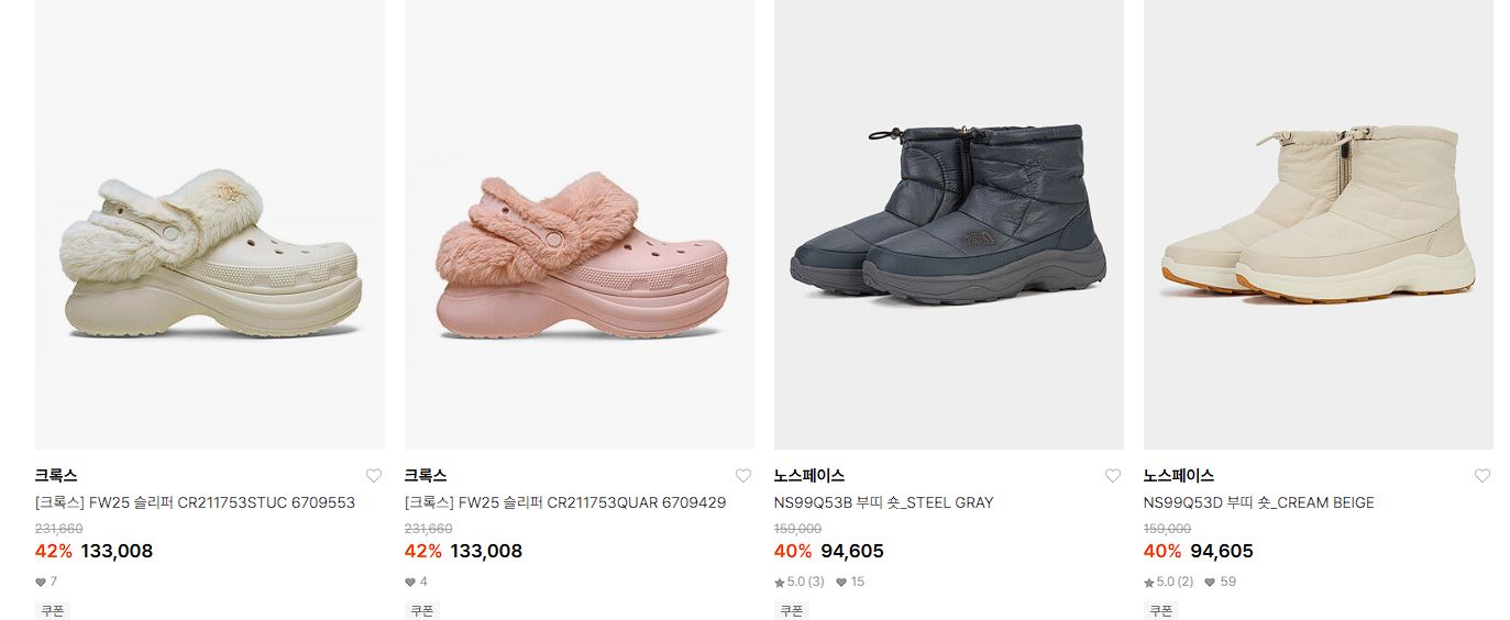 W컨셉 방한슈즈 세일 정보 [링크]