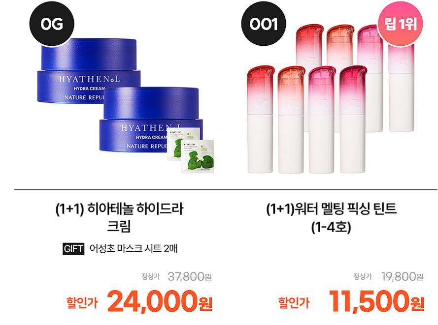 할인 품목 : 토너, 틴트, 마스크 시트 등
