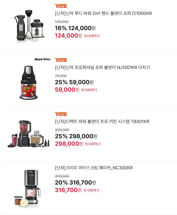 할인 품목 : 블렌더, 아이스크림 메이커 등