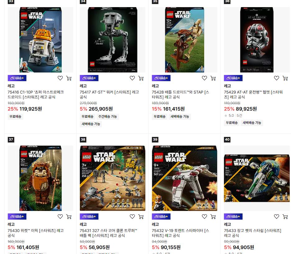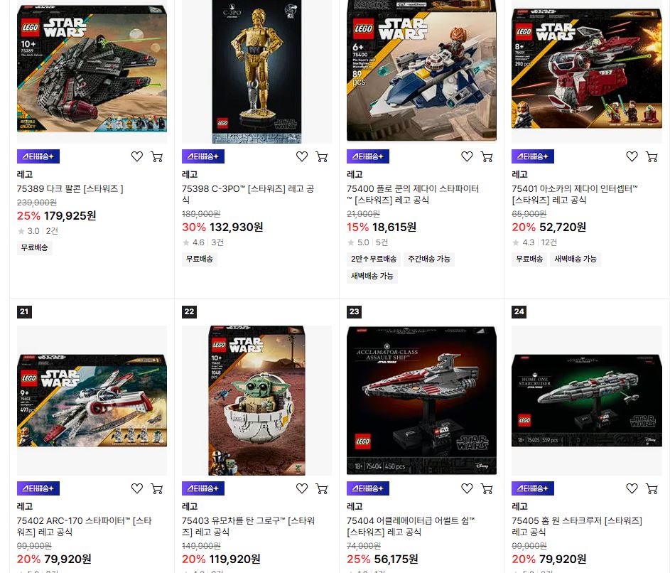 할인 품목 : 밀레니엄 팔콘, 츄바카 등