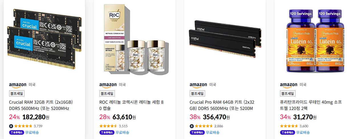 할인 품목 : 램, 의류, 영양제 등
