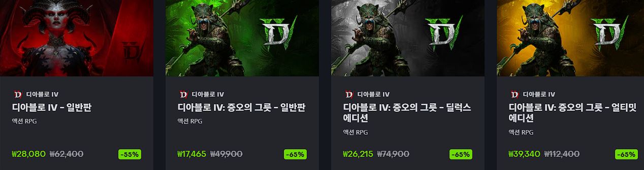 할인 품목 : 디아블로4, 아우터월드2 등