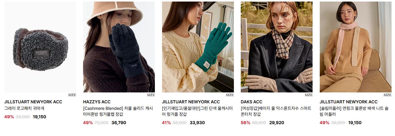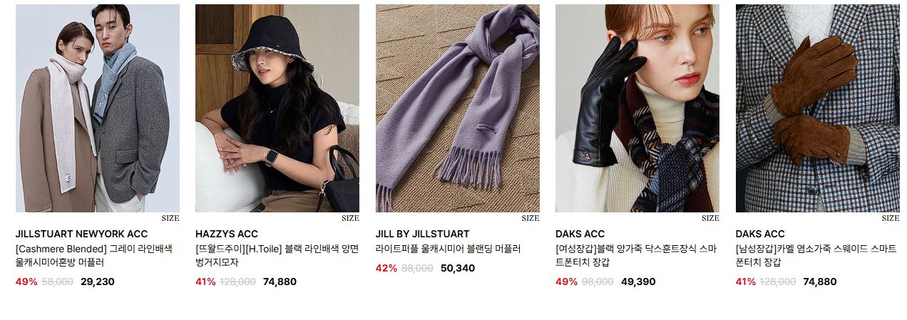 할인 품목 : 머플러, 장갑, 지갑 등