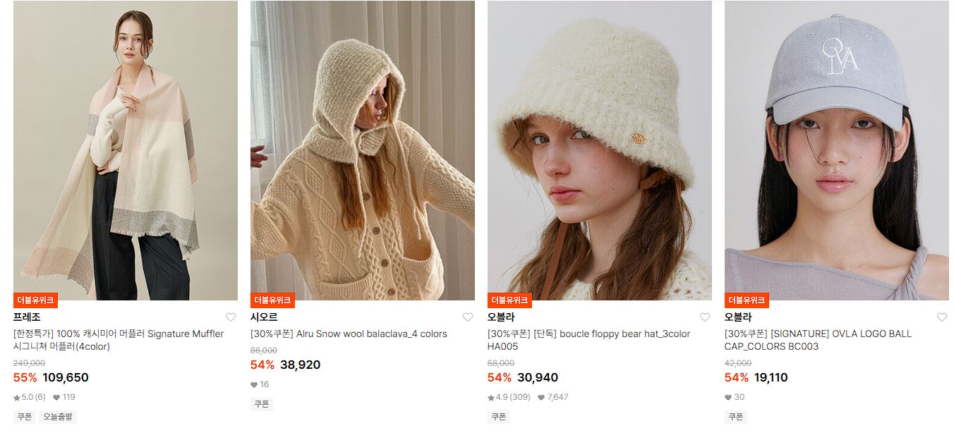 W컨셉 방한 액세서리 할인 이벤트