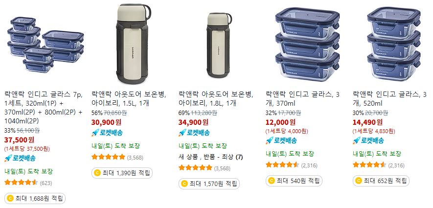 할인 품목 : 밀폐용기, 후라이펜, 머그 등