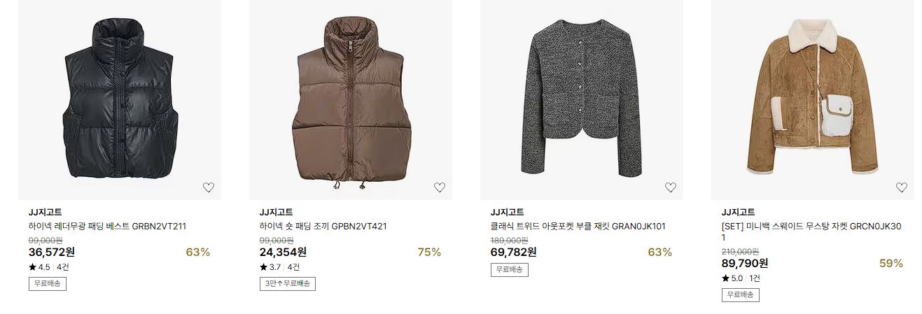 할인 품목 : 점퍼, 자켓, 맨투맨 등