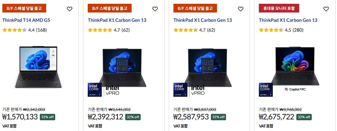 레노버 블랙 프라이데이 세일 정보 [링크]