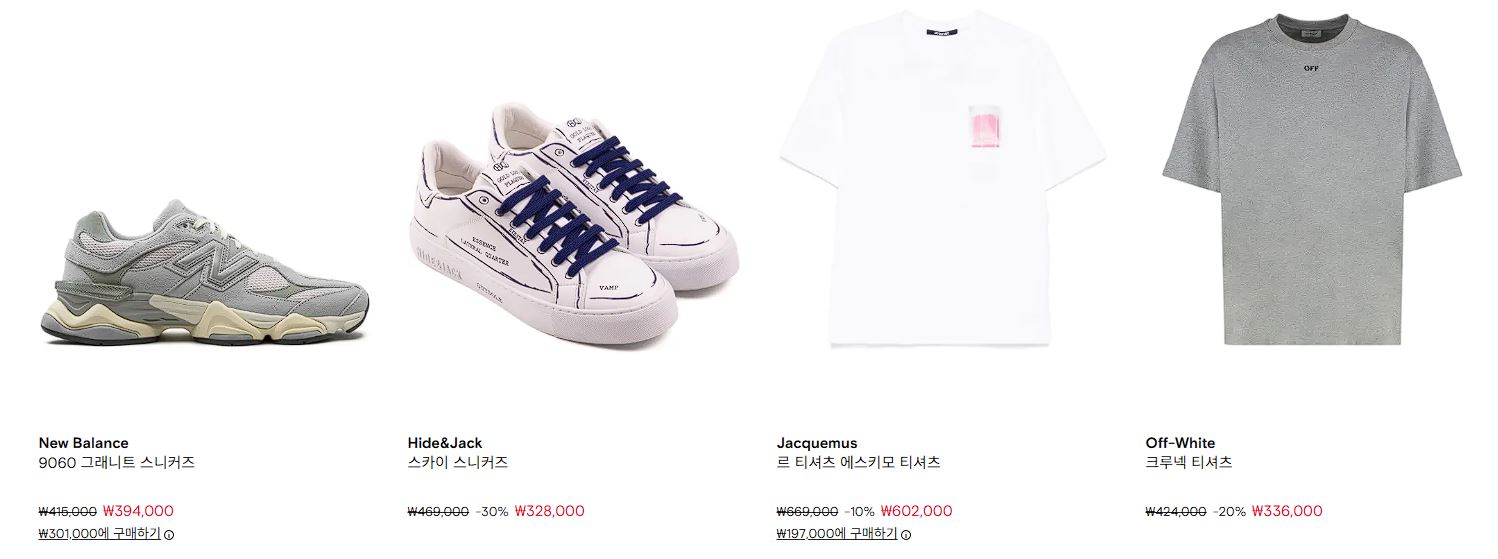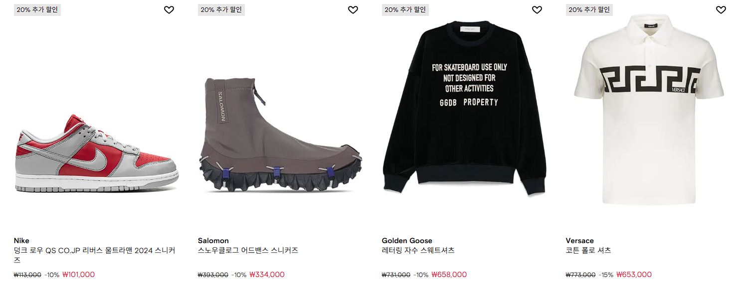 할인 품목 : 의류, 신발, 가방 등