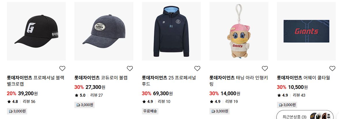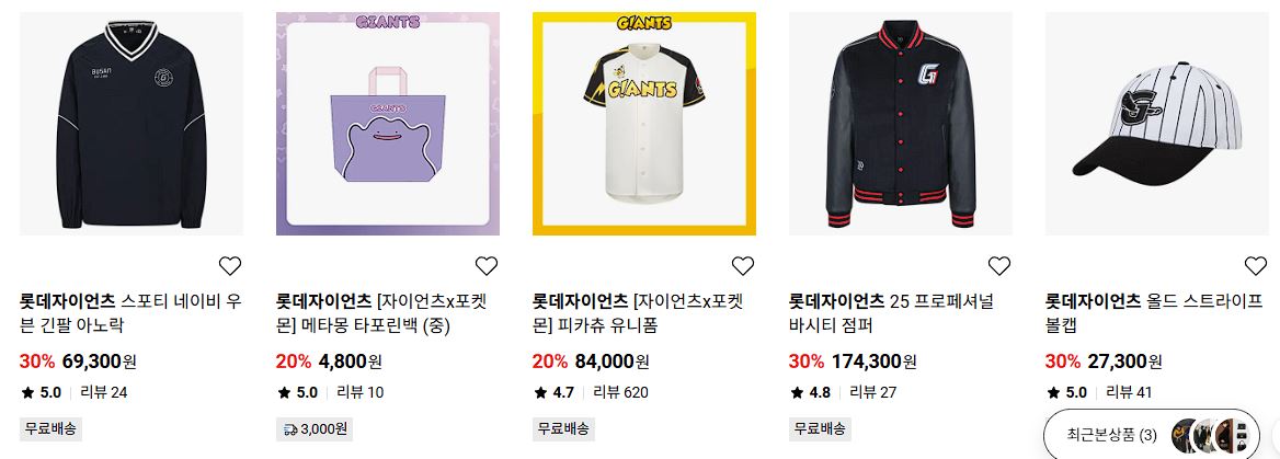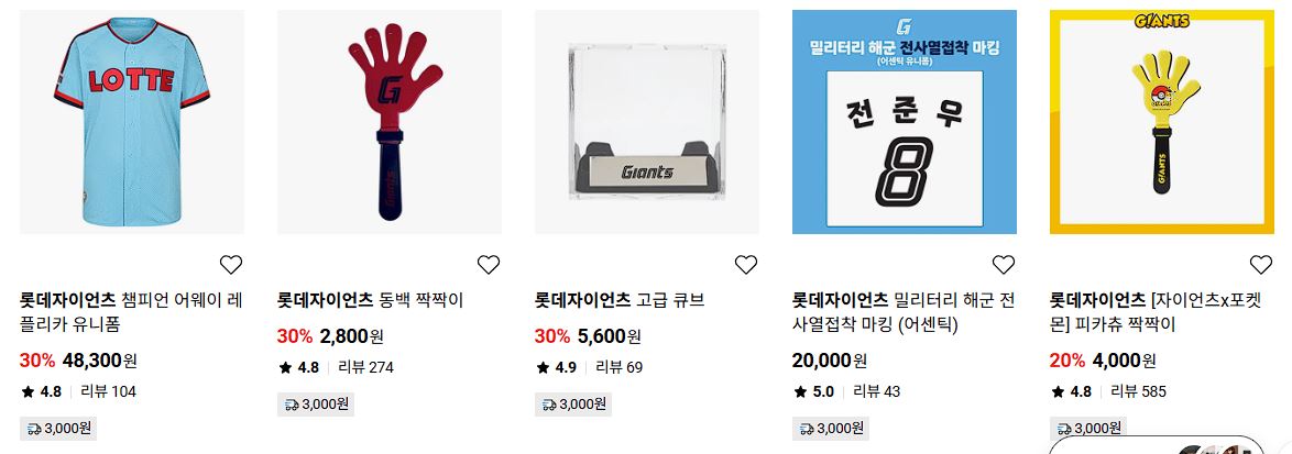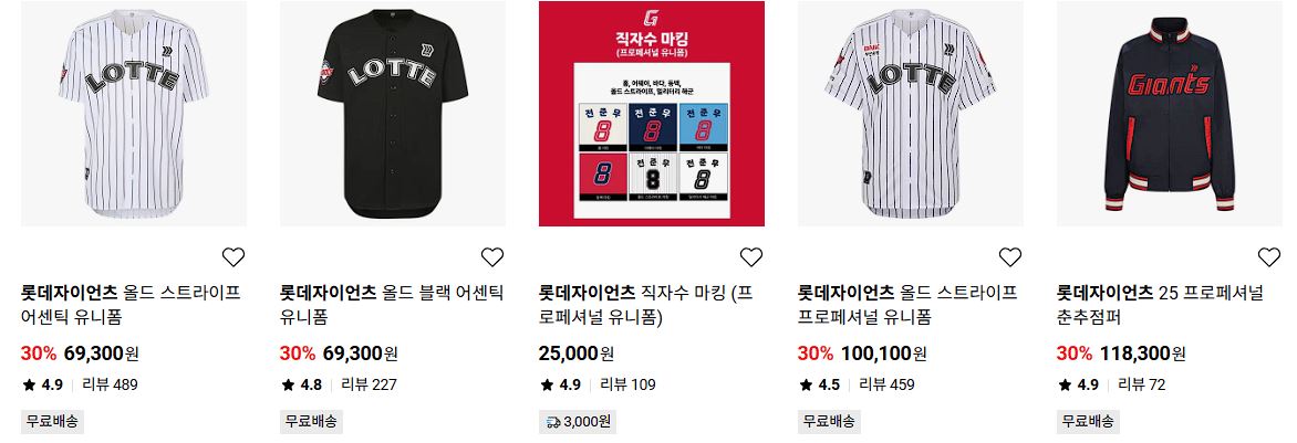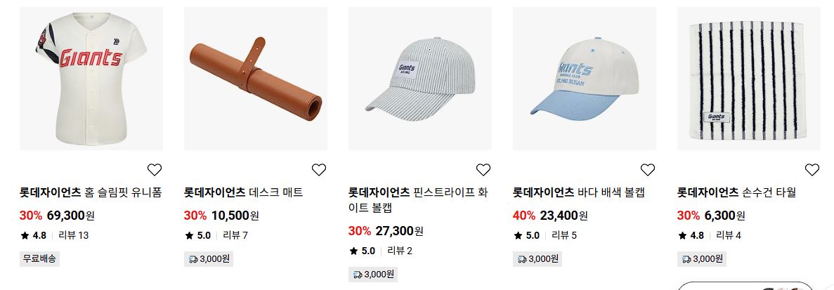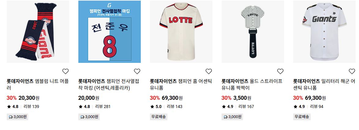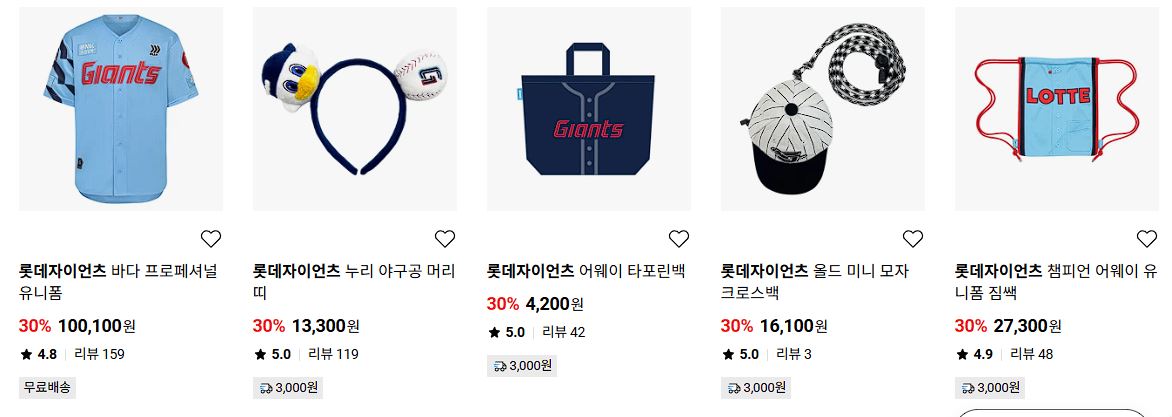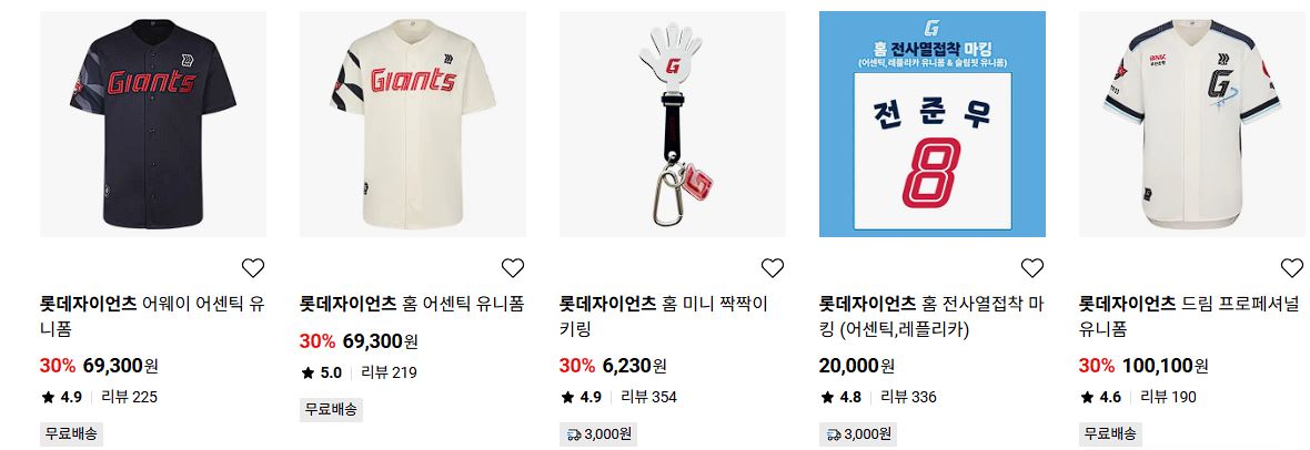 롯데자이언츠 다양한 제품을 할인 판매하네요.