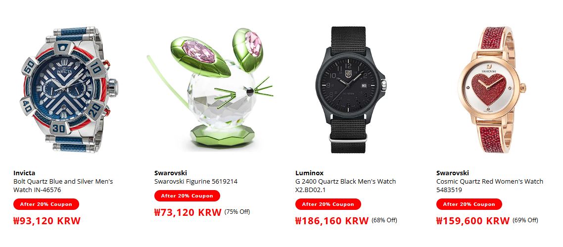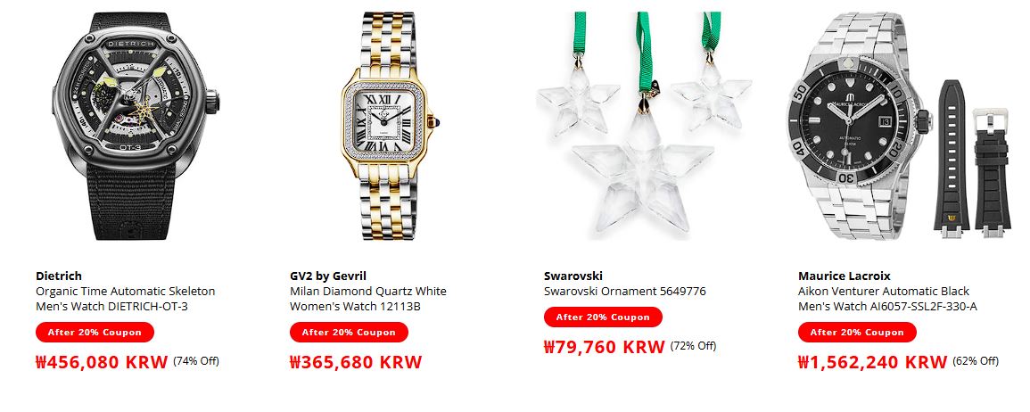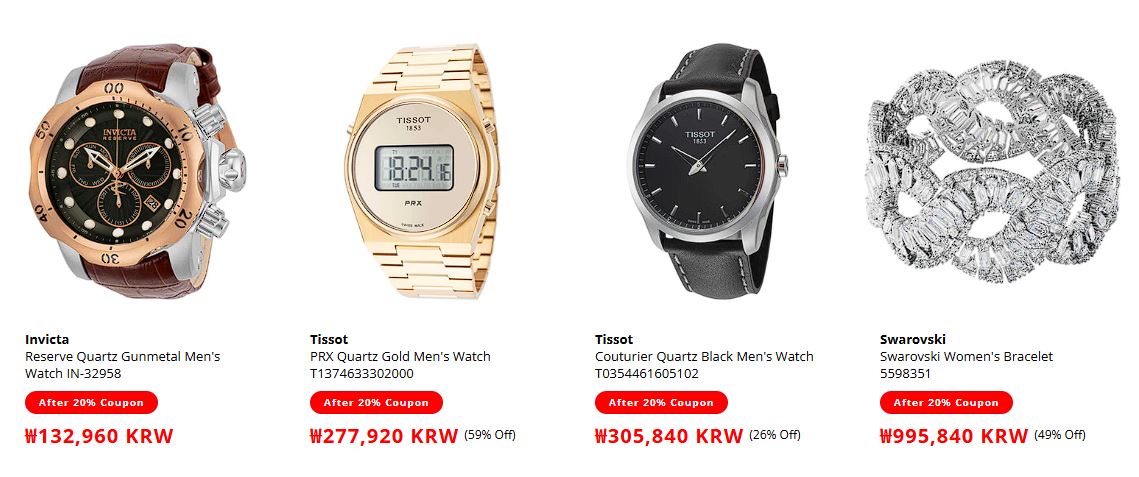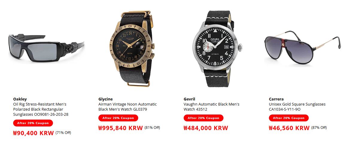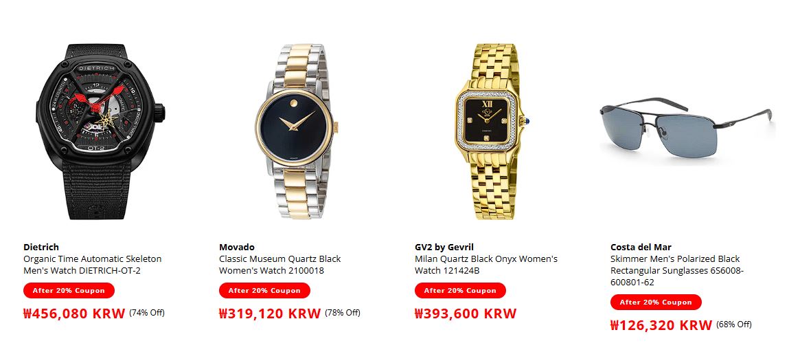 할인 품목 : 시계, 선글라스 등