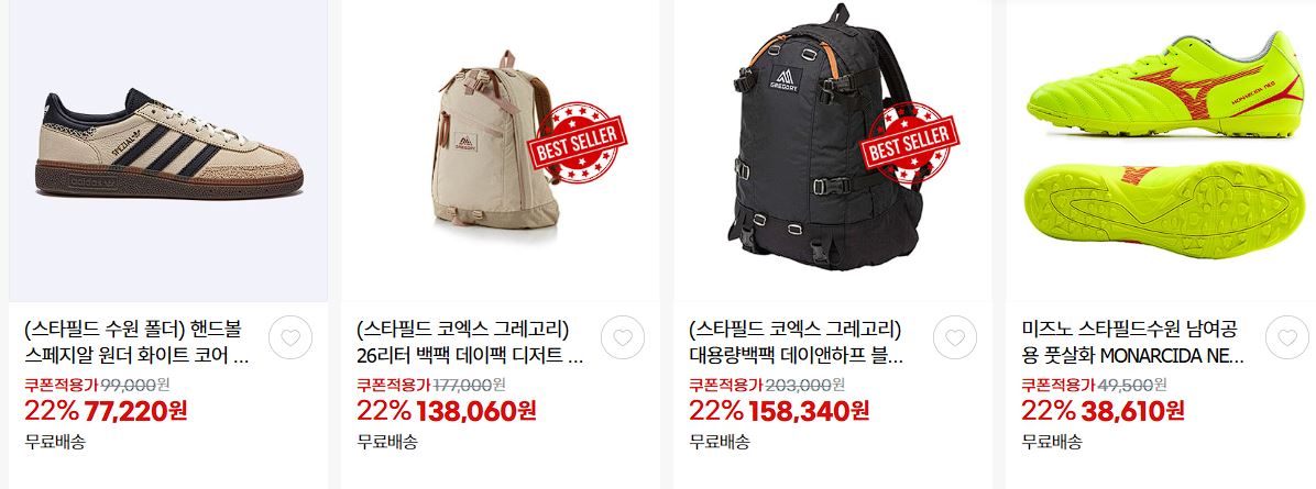 할인 품목 : 운동화, 의류, 화장품 등