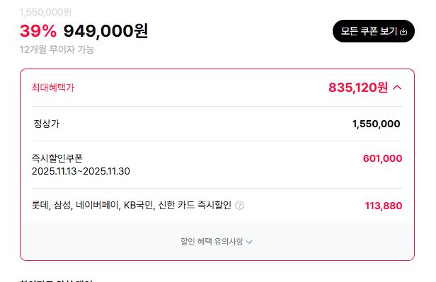 최대 할인가 835120원