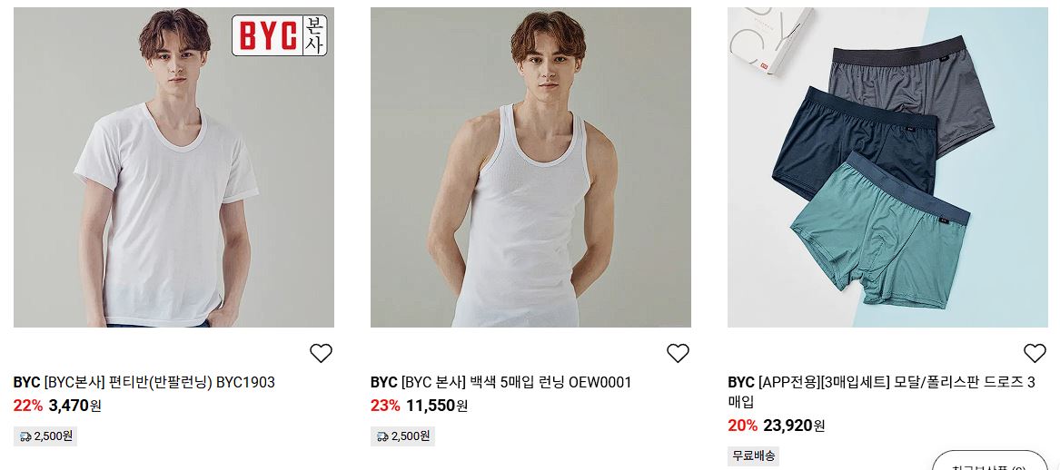 BYC 다양한 제품을 할인 판매하네요.