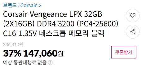 Corsair Vengeance LPX 32GB DDR4 3200 할인 정보 [링크]