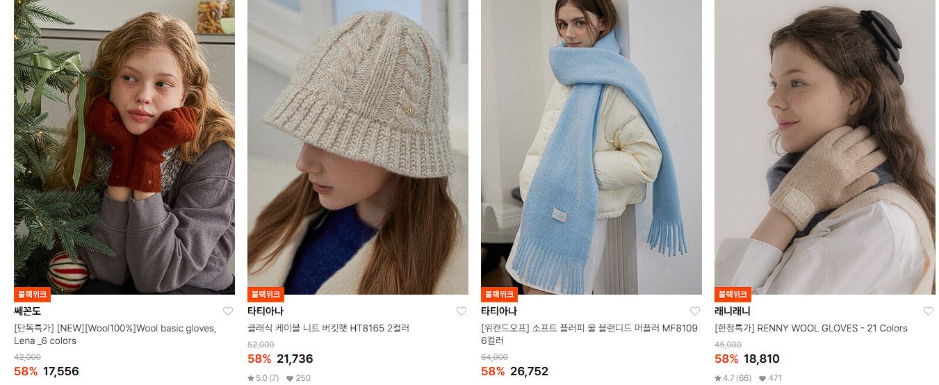 W컨셉 방한용품 세일 정보 [링크]