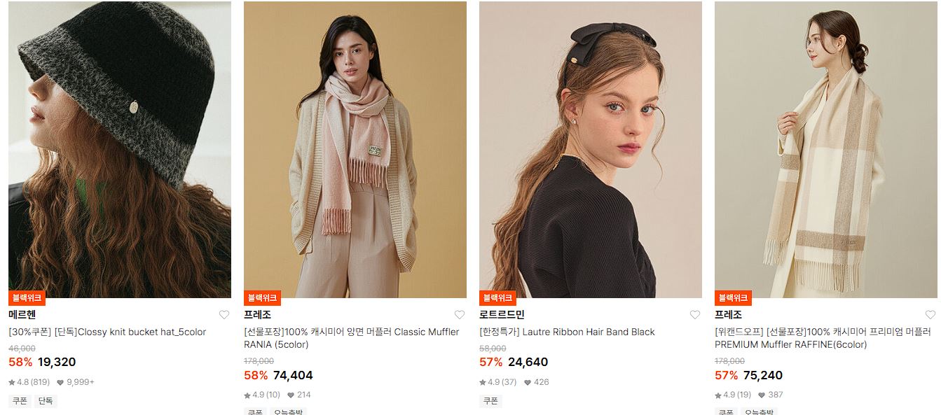 할인 품목 : 머플러, 모자 등