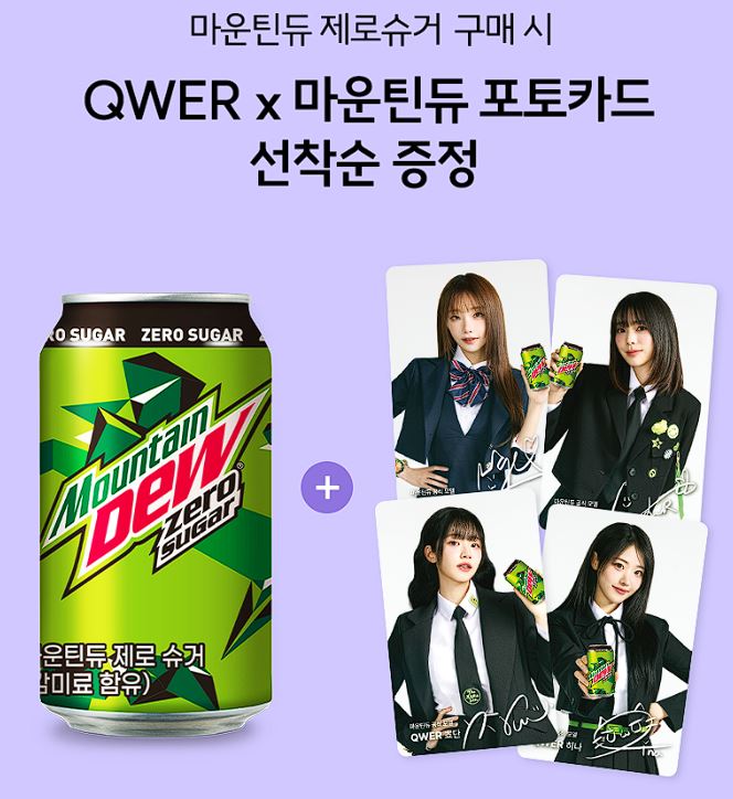 마운틴듀 제로슈거 355ml 24캔+QWER 포토카드 증정 이벤트를 진행하네요.