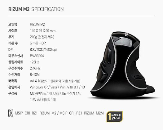 리줌 M2 인체공학 무선 버티컬마우스 할인 정보 [링크]