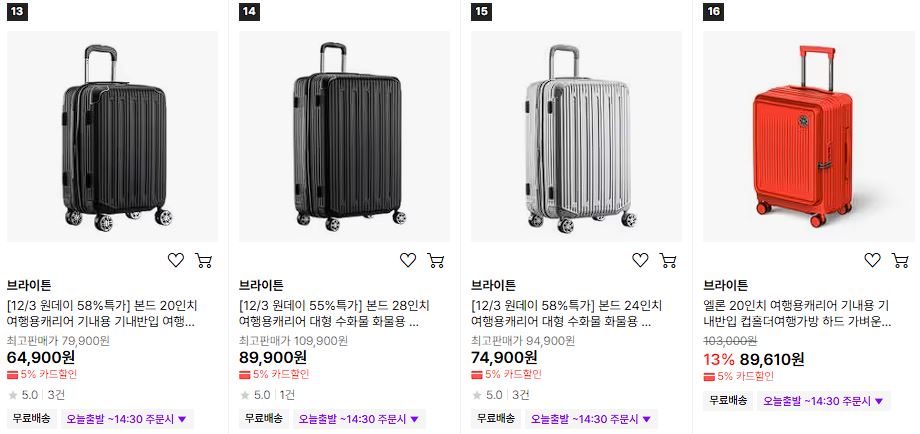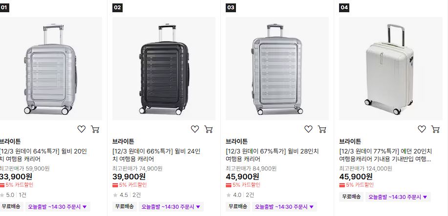 브라이튼 캐리어 원데이 특가 이벤트 정보 포스팅입니다.