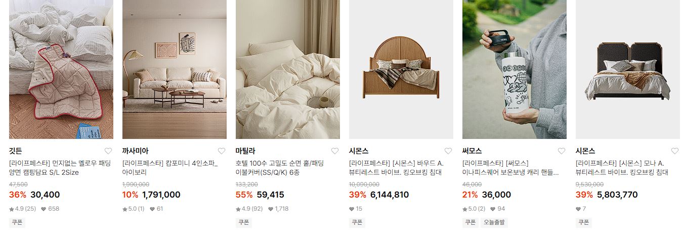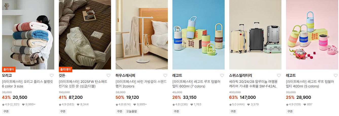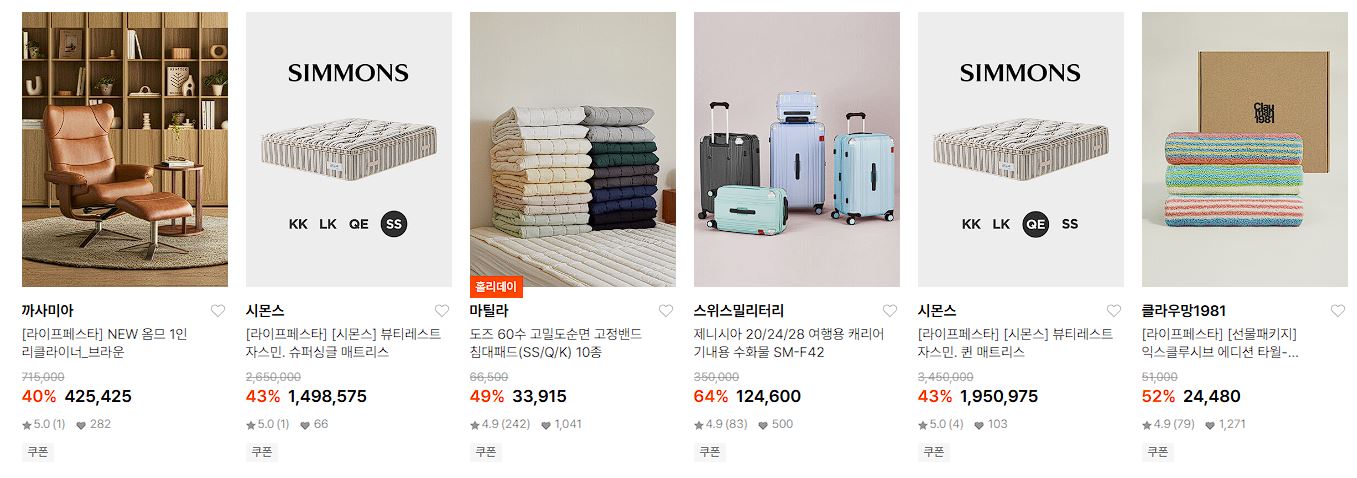 할인 품목 : 캐리어, 텀블러, 매트리스, 타월 등