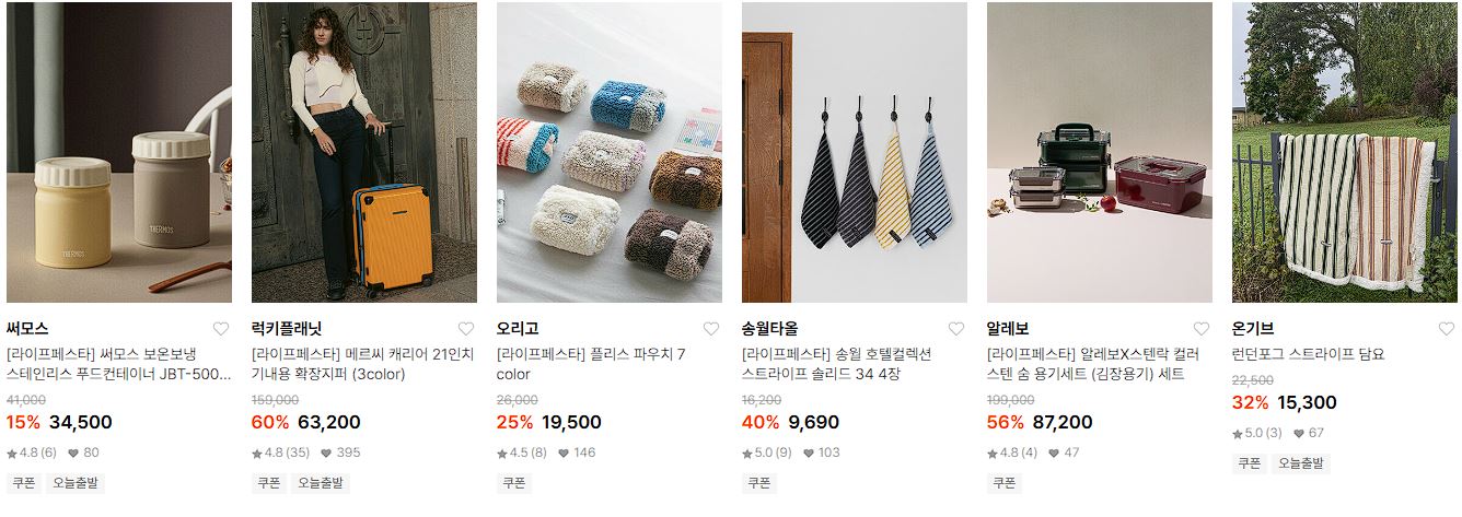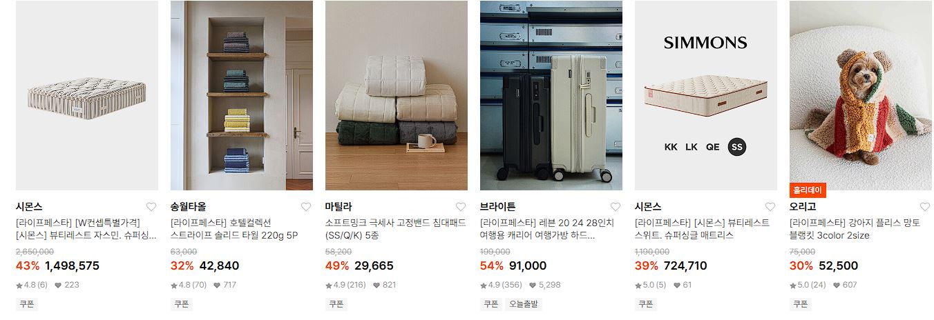 할인 품목 : 캐리어, 텀블러, 매트리스, 타월 등