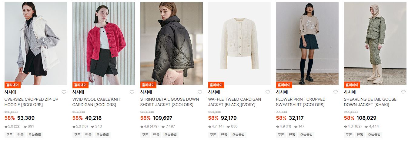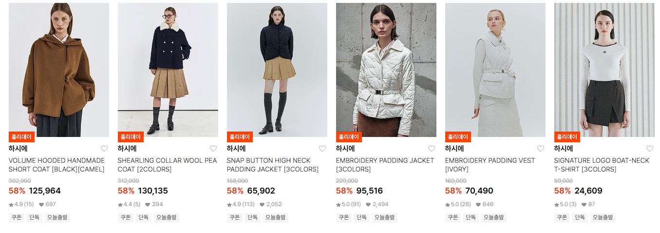 할인 품목 : 점퍼, 코트, 팬츠 등