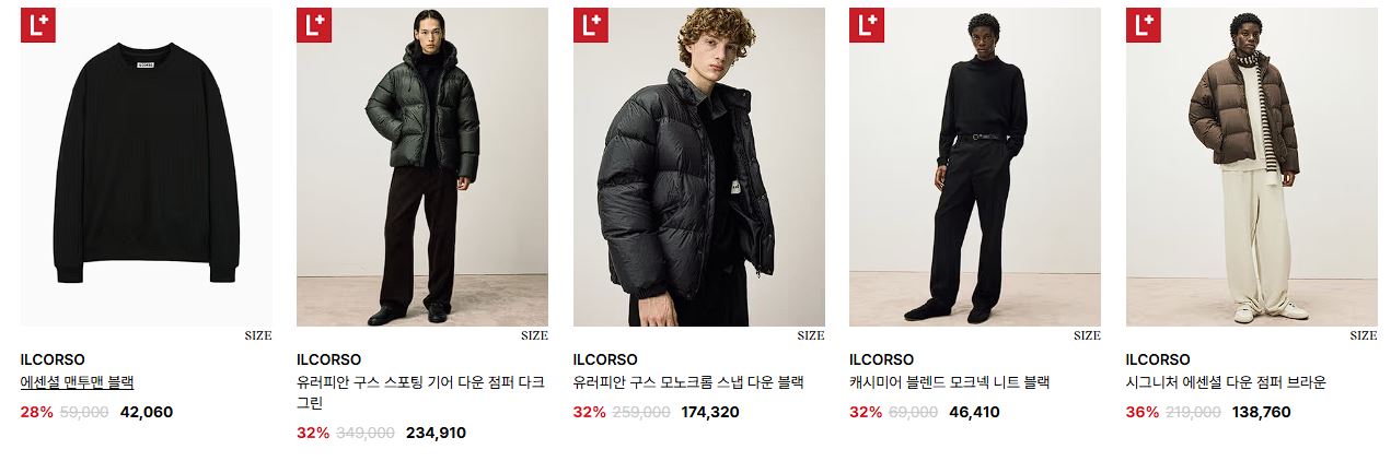 일꼬르소 다양한 제품을 할인 판매하네요.