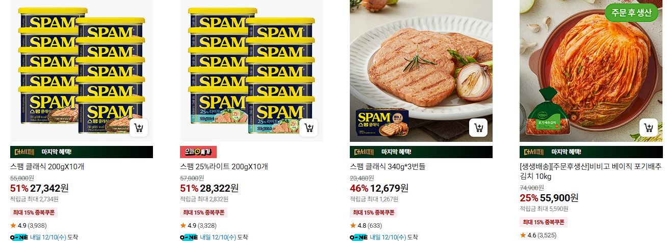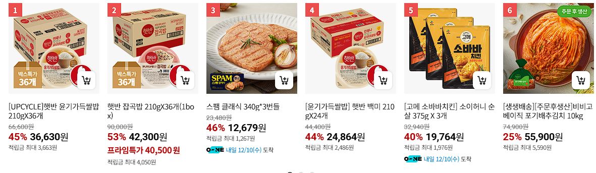 할인 품목 : 만두, 스팸, 햇반 등