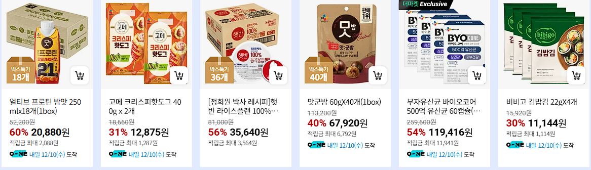 할인 품목 : 만두, 스팸, 햇반 등