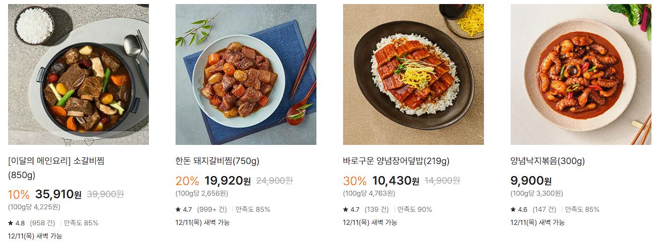 할인 품목 : 갈비찜, 닭갈비, 죽 등