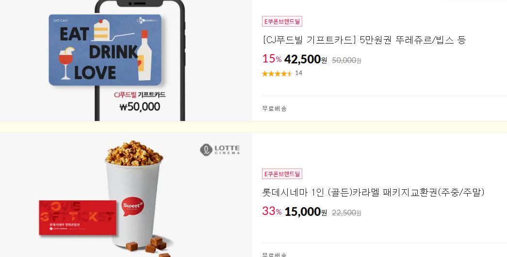 11번가 다양한 E쿠폰을 할인 판매하네요.